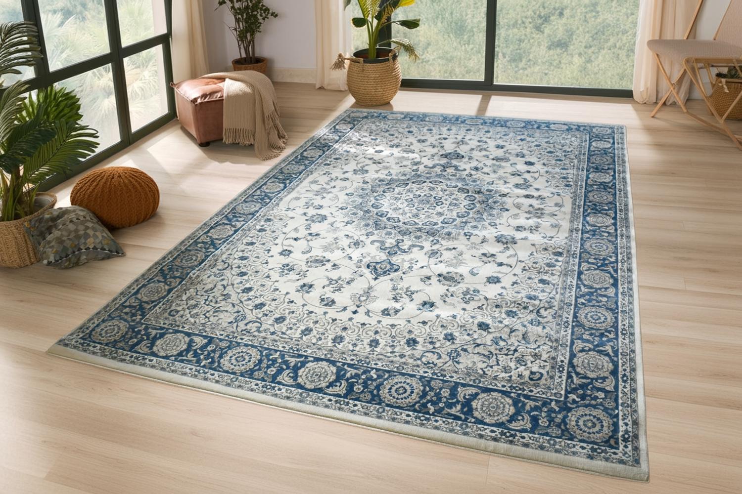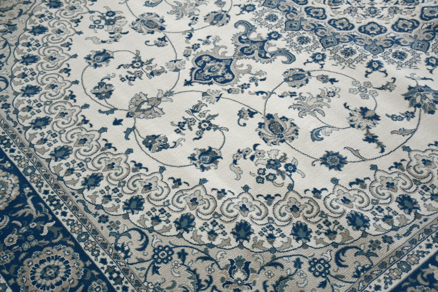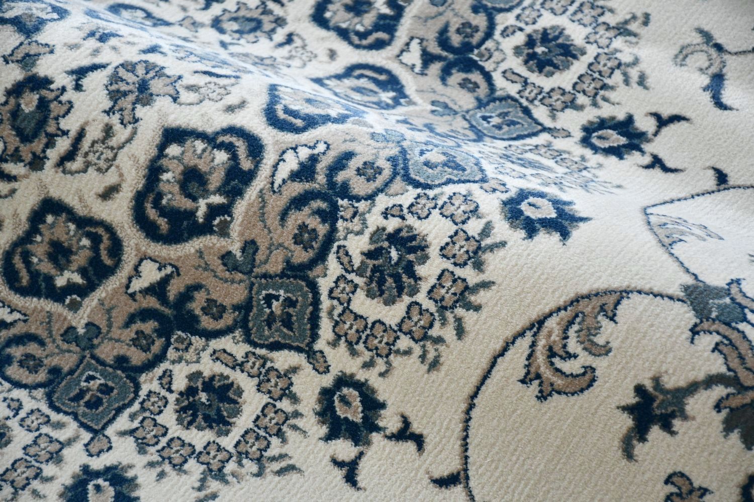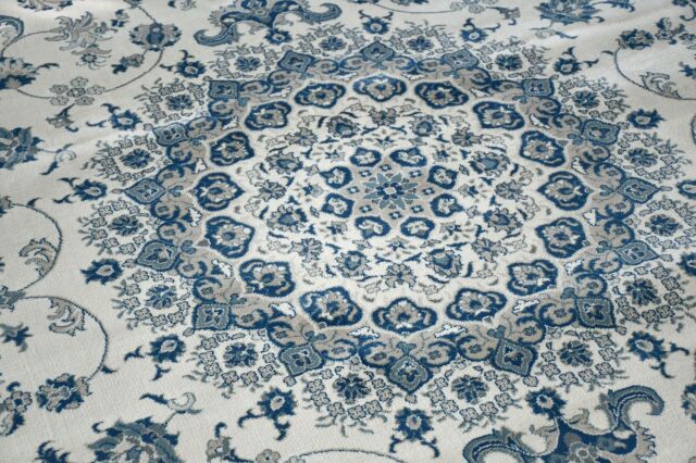 明るめでクラシカルでありながら華美ではなく敷きやすい柄だと思います。光の加減で色合いが変わるので部屋によっては写真よりベージュっぽく見えるかもしれません。厚手で密度も高いので踏み心地が良くいい商品だと思います。