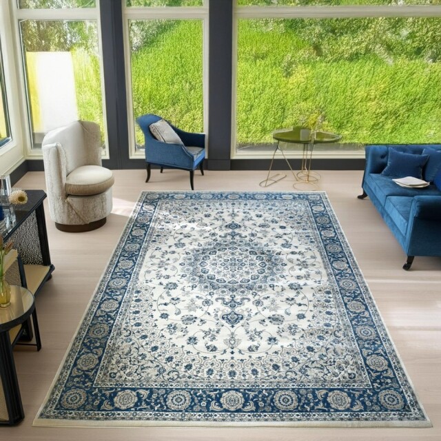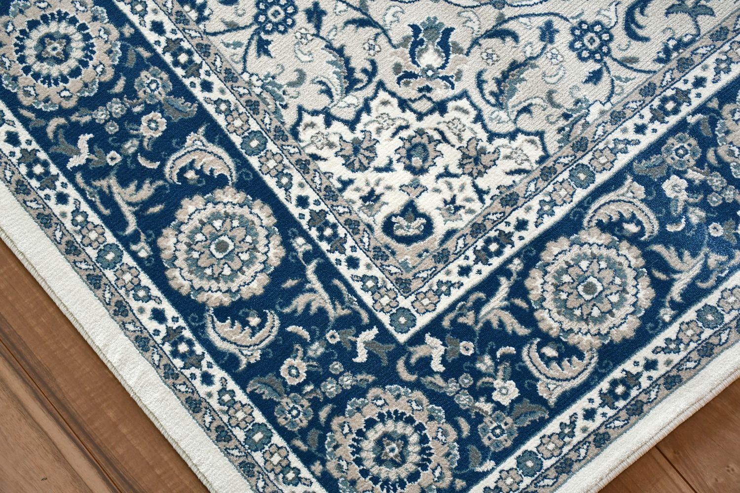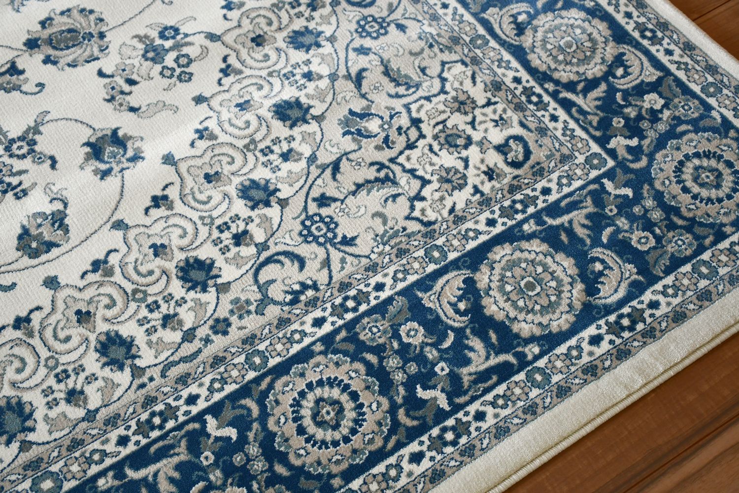 明るめでクラシカルでありながら華美ではなく敷きやすい柄だと思います。光の加減で色合いが変わるので部屋によっては写真よりベージュっぽく見えるかもしれません。厚手で密度も高いので踏み心地が良くいい商品だと思います。