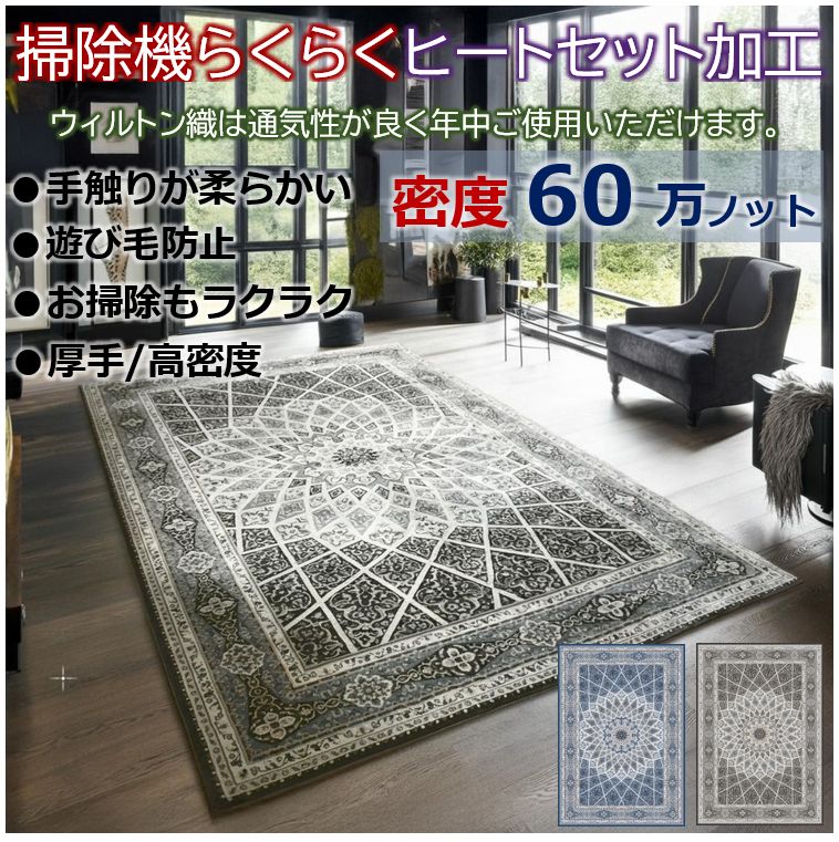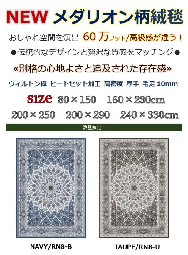 | 製法: | ウィルトン織 (ダブルフェイス) NEW/4辺オーバーロック仕上げ(美観がUP) |